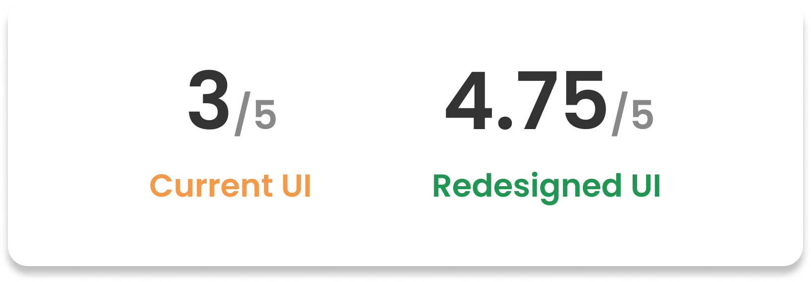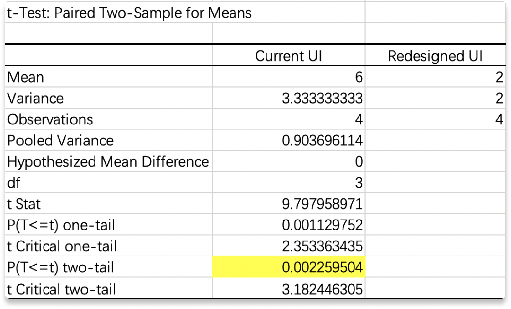 The p values were both obviously less than 0.05, so the null hypothesis should be rejected. In another word, the redesigned UI significantly reduced the steps user need to take for completing these common tasks. In addition, the average satisfaction scores reflected that participants were preferred the new UI.