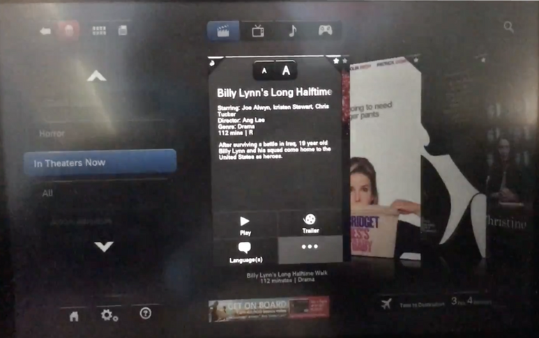 A pop-up box will appear once a movie option is clicked. The box is tiny and the texts inside is very difficult to read. In addition, considering some AA’s passengers might have comprehension challenges (i.e. non-English native), some labels (i.e. entertainment, hospitality) might not be very easy-to-understand.