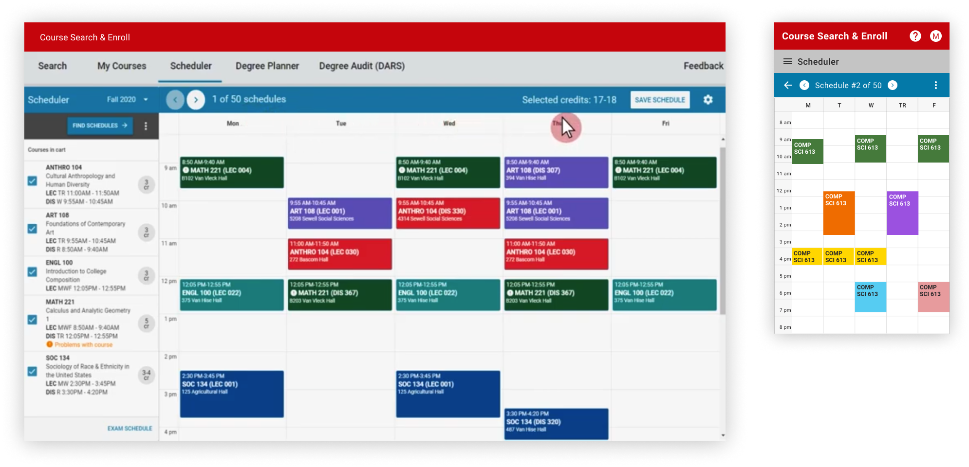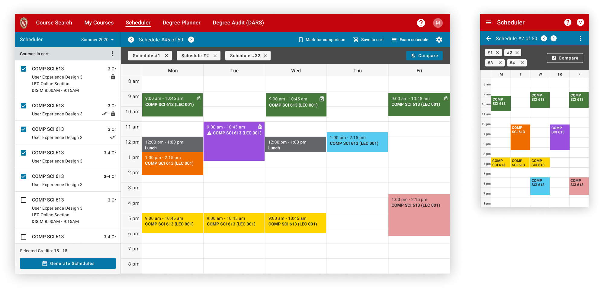 As suggested by many students, we added a feature for comparing multiple schedules side by side at the same time.